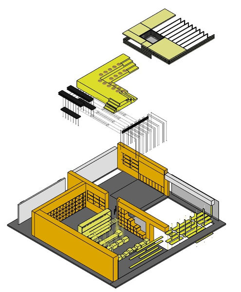 The concept proposed is “INTERACTION” between HUMAN and BOOKS. The form is emphasize on intersections and connection to represent the crossing of stories in books and lifestyle in reality. Diagonal lines are used to form the concept model by referring to the element of Eslite’s logo.